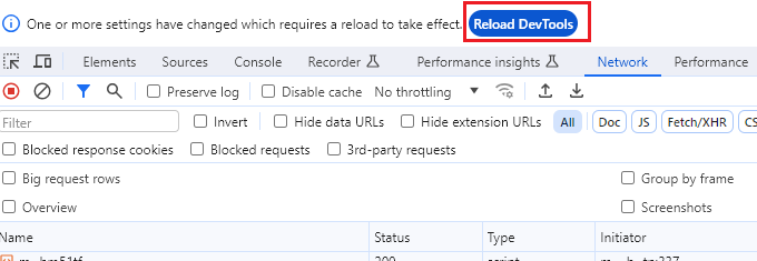 언어 변경 후 닫기를 누른 후에 적용이 되도록 Reload DevTools를 눌러준다.