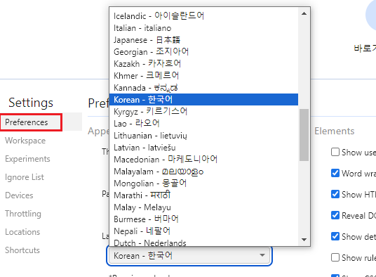 Chrome 개발자 도구 언어 변경하는 방법은 간단하다.