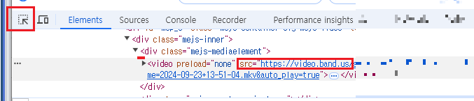 밴드에 등록된 영상화면에서 F12 또는 오른마우스 '검사'를 눌러 개발자 툴을 연다.