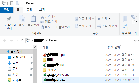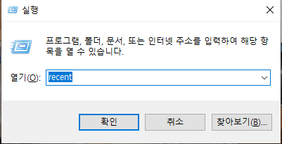 Win + r > 실행창 > recent 입력