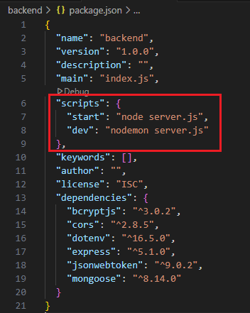 파일을 열어 "scripts" 부분에 "start"와 "dev"를 설정하고 서버를 실행시킬 때 dev를 사용하면 nodemon이 자동으로 코드에 변화가 있을 때마다 재시작해서 개발시에 편리하다.