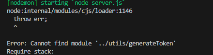 어떤 문제인지 대략 눈치 챌 수 있다. 컨트롤러에서 generateToken을 사용하려는데 아직 그 파일을 만들지 않았다.